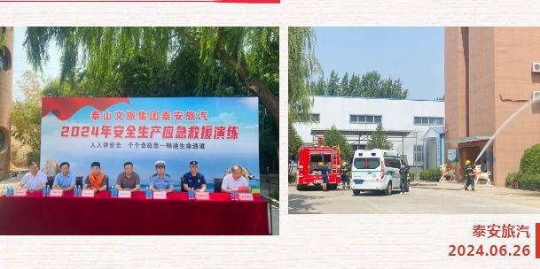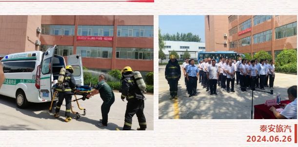 為全面強化公司安全管理,切實提高全體職工的安全意識和安全素養(yǎng),貫徹落實行業(yè)主管部門關于安全生產(chǎn)工作重要指示精神和安全生產(chǎn)月活動統(tǒng)一部署,6月26日上午,泰山文旅集團泰安旅汽結(jié)合實際,緊緊圍繞2024年第23個安全月“人人講安全 個個會應急——暢通生命通道”的活動主題,組織進行了辦公樓火災逃生綜合應急預案演練和車輛起火現(xiàn)場處置預案演練。本次活動邀請到市交通運輸局、交警支隊、消防大隊、中心血站、文旅產(chǎn)投集團相關單位領導蒞臨現(xiàn)場觀摩指導。